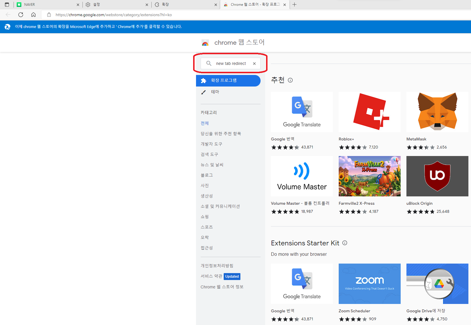 특히 새 탭을 열었을 때 시작페이지 설정이 조금 까다롭습니다.