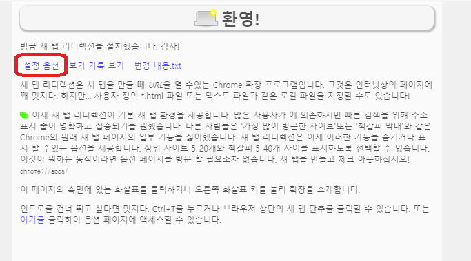기본적으로 새 탭이 생성될 때 네이버나 다음 같은 페이지가 나오지 않게 됩니다.